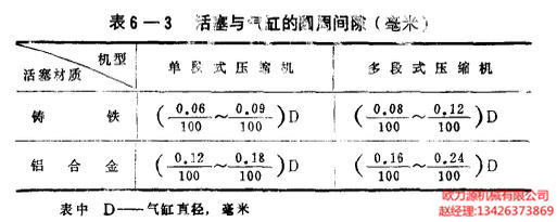 活塞與氣缸之間沿圓周的間隙應按制造廠說明書和圖紙 的規定數值檢查調整。如無規定時,可參照下表調整。